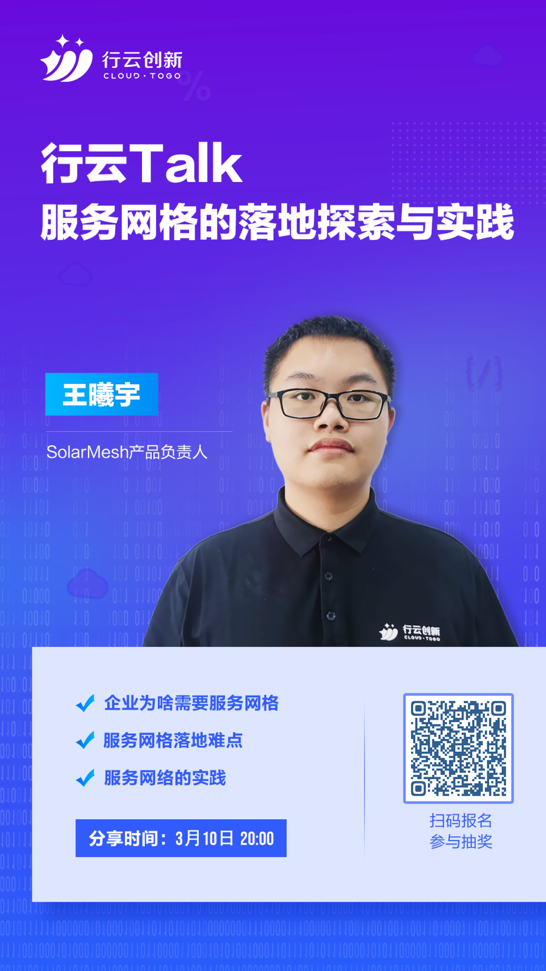 3月10日,NG28创新SolarMesh产品负责人王曦宇将分享服务网格的落地探索与实践,介绍企业为啥需要服务网格,服务网格的落地难点与实践