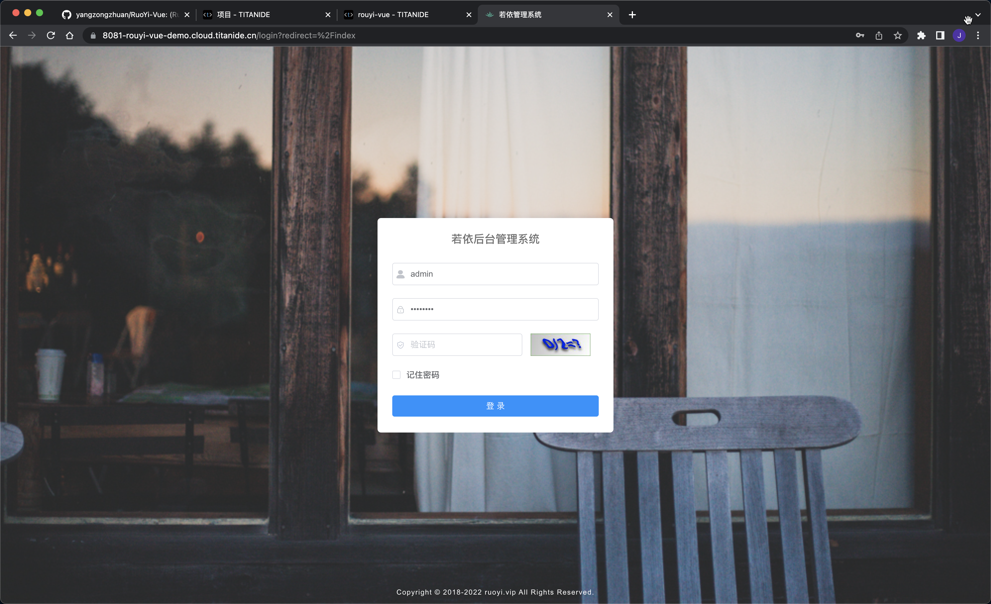 https://github.com/yangzongzhuan/RuoYi-Vue.git),通过创建 URL 导入的方式创建 TITANIDE 项目。
